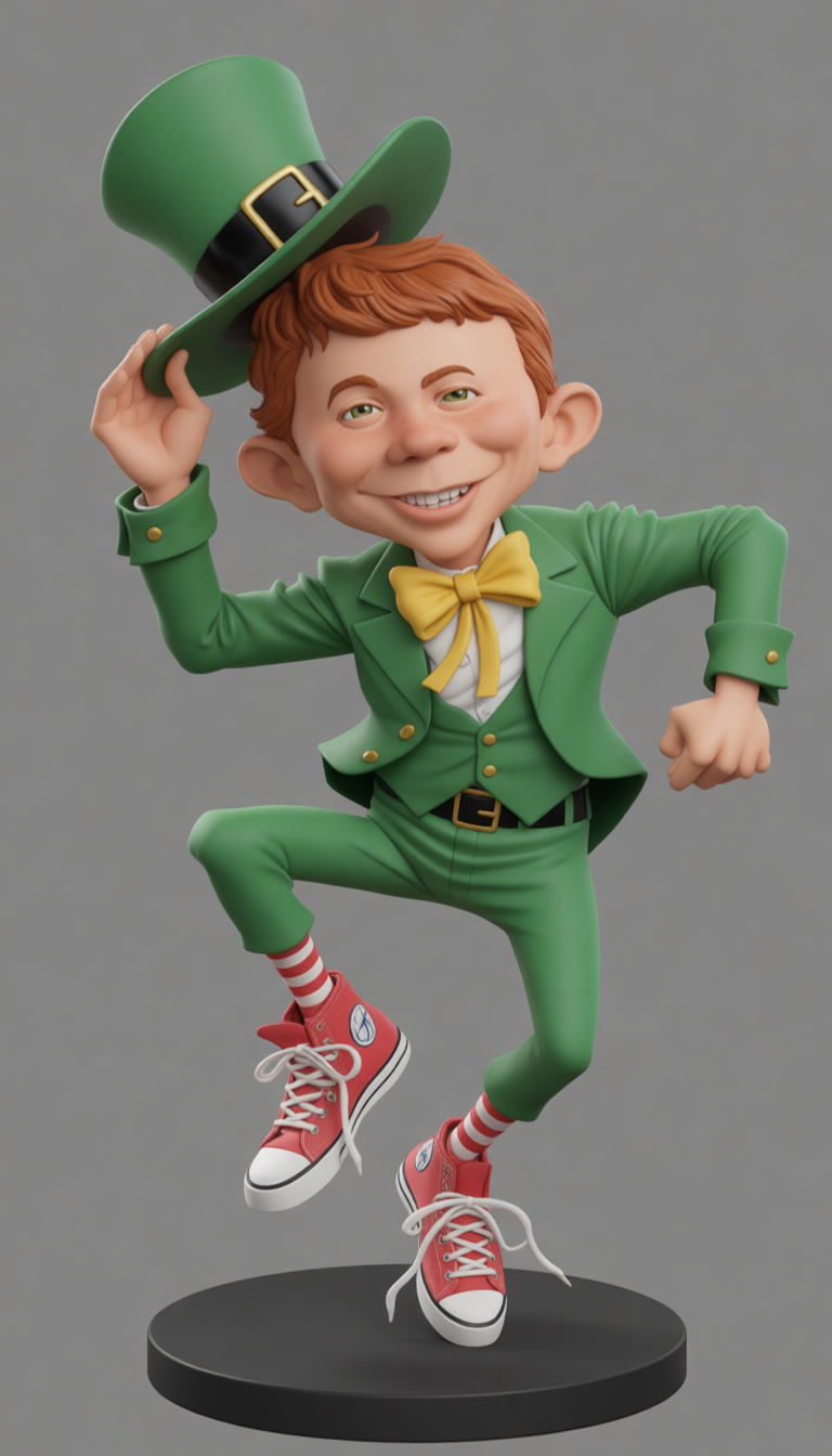 The character retains the classic traits of Norman Mingo and Harvey Kurtzman — the carefree grin, big ears, and mischievous gaze — but now in a modern reinterpretation, with vibrant colors, metallic details, and an aesthetic that evokes “ironic luxury.” The sculpture translates the essence of the cover into 3D volume, paying homage to decades of visual satire while refreshing it for a 21st-century audience.