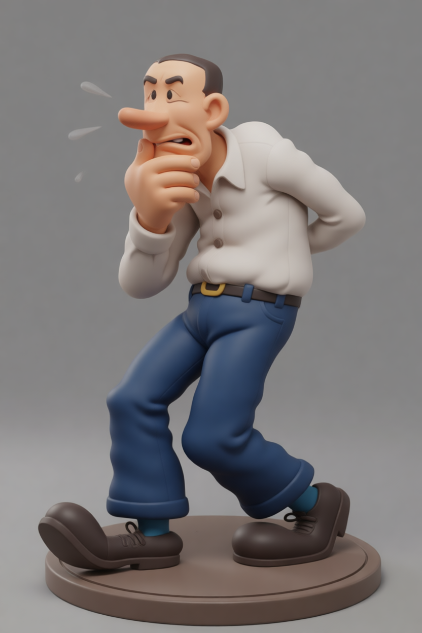 This is a three-dimensional representation of “Flakey Foont”, the most famous and self-reflective alter ego of Robert Crumb. Flakey personifies the neurosis, male insecurity, and obsessive self-indulgence that Crumb explores with acid humor and brutal frankness in his stories. The figure captures Foont in his melancholic and self-aware essence: slouched shoulders, an expression of existential perplexity, sloppy clothing, and the posture of a man eternally tormented by his own desires and failures.