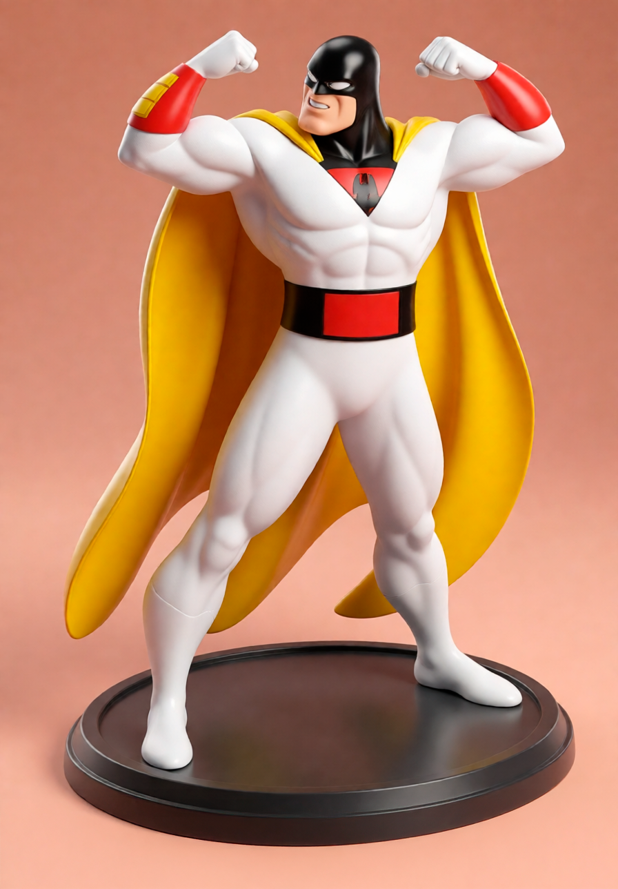 Space Ghost is one of Hanna-Barbera’s most iconic characters, originally created in 1966 as an intergalactic hero defending the universe from cosmic threats. Wearing his unmistakable white suit, yellow cape, gloves, and mask, Space Ghost became a timeless symbol of classic animation and pop culture, evolving from an action hero into a cult television icon.
