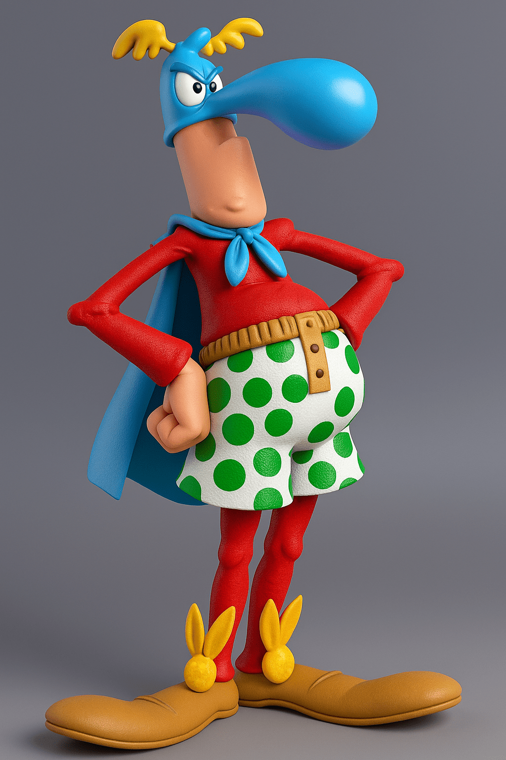 Esta figura tridimensional traduz com fidelidade o visual peculiar de Captain Klutz, trazendo à vida suas proporções exageradas, expressões cômicas e aparência desajeitada. Cada detalhe reforça o caráter satírico do personagem, transformando-o em um Toy Art cheio de personalidade, humor e referência cultural.