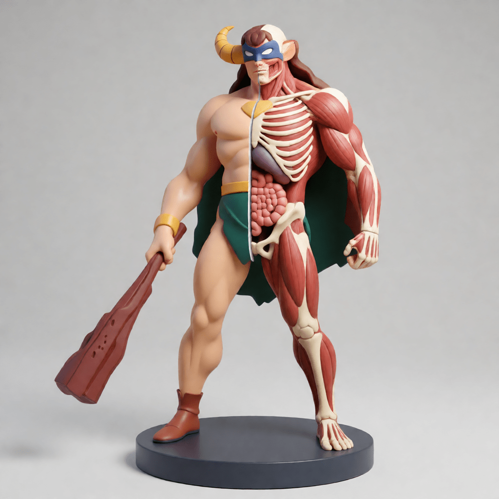The Mightor – Anatomical Half Edition é uma reinterpretação ousada e conceitual do clássico herói de Hanna-Barbera, mesclando cultura pop, toy art e estudo anatômico em uma única peça colecionável.