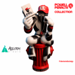 Elementos gráficos adicionais e referências diretas à identidade visual da Powell-Peralta emolduram a escultura, conectando-a ao legado internacional da marca e à contribuição fundamental de skatistas europeus para a consolidação da cena global do skate nos anos 80.